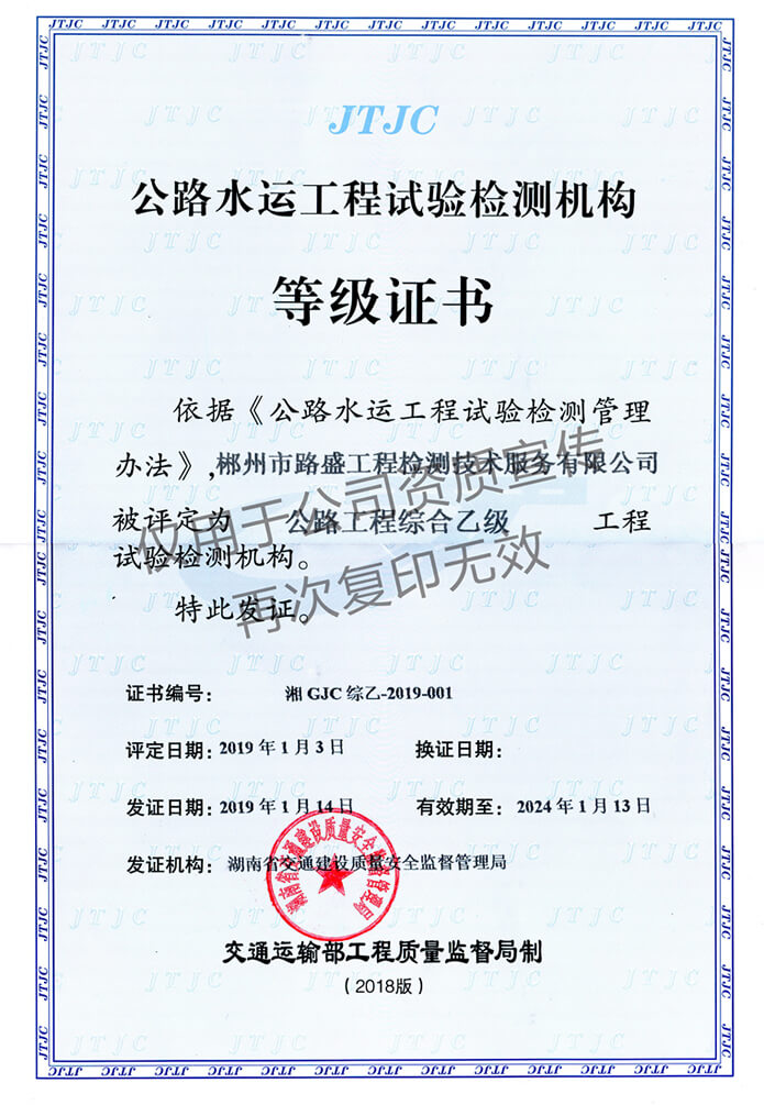 建設(shè)工程質(zhì)量檢測(cè)機(jī)構(gòu)資質(zhì)證書(shū)